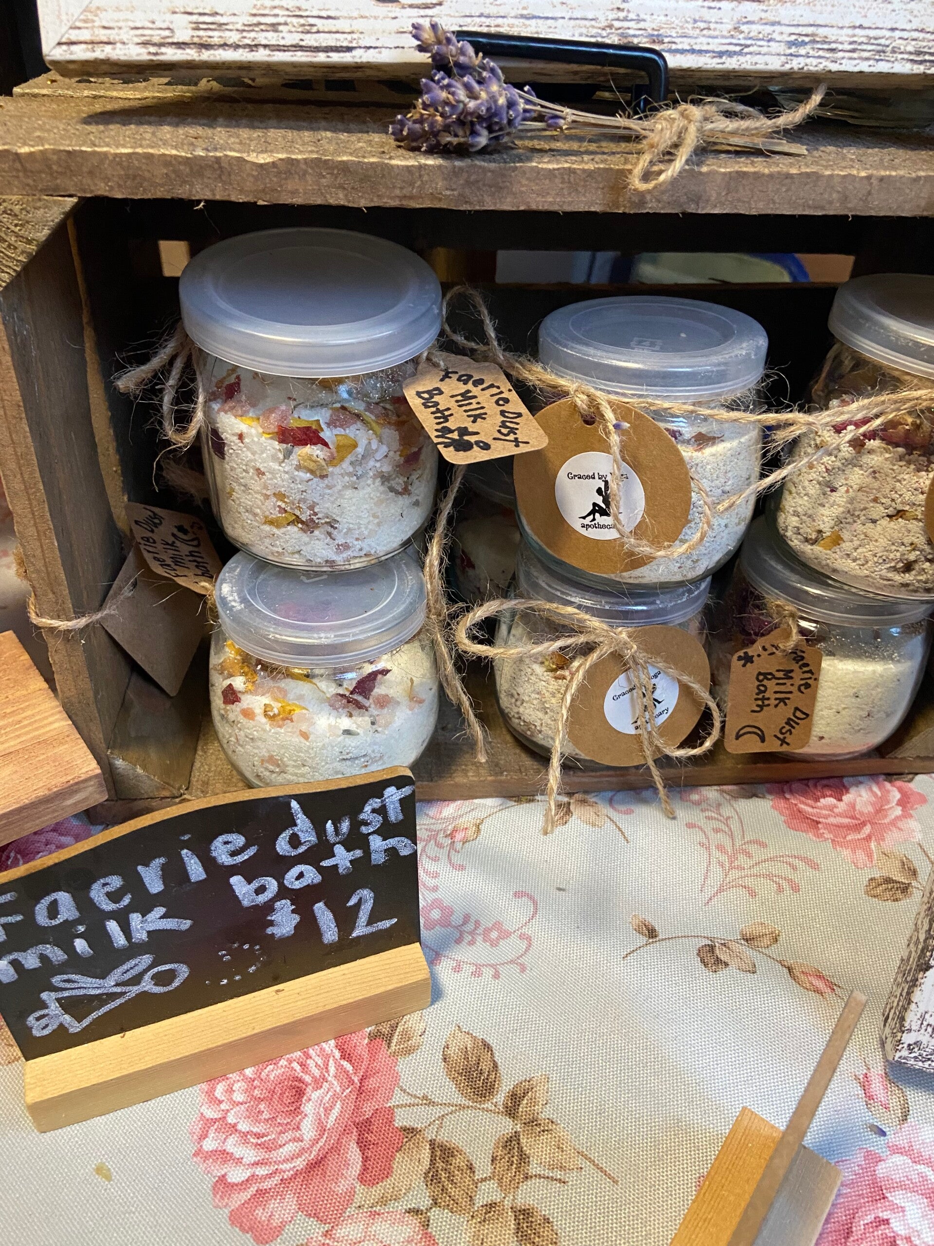 Handmade with equal parts Himalayan salt, whole milk powder and epsom salts. Mixed with rose petals and lavender.and seasonal essential oils. To prepare for dream time or for deep relaxation rituals.